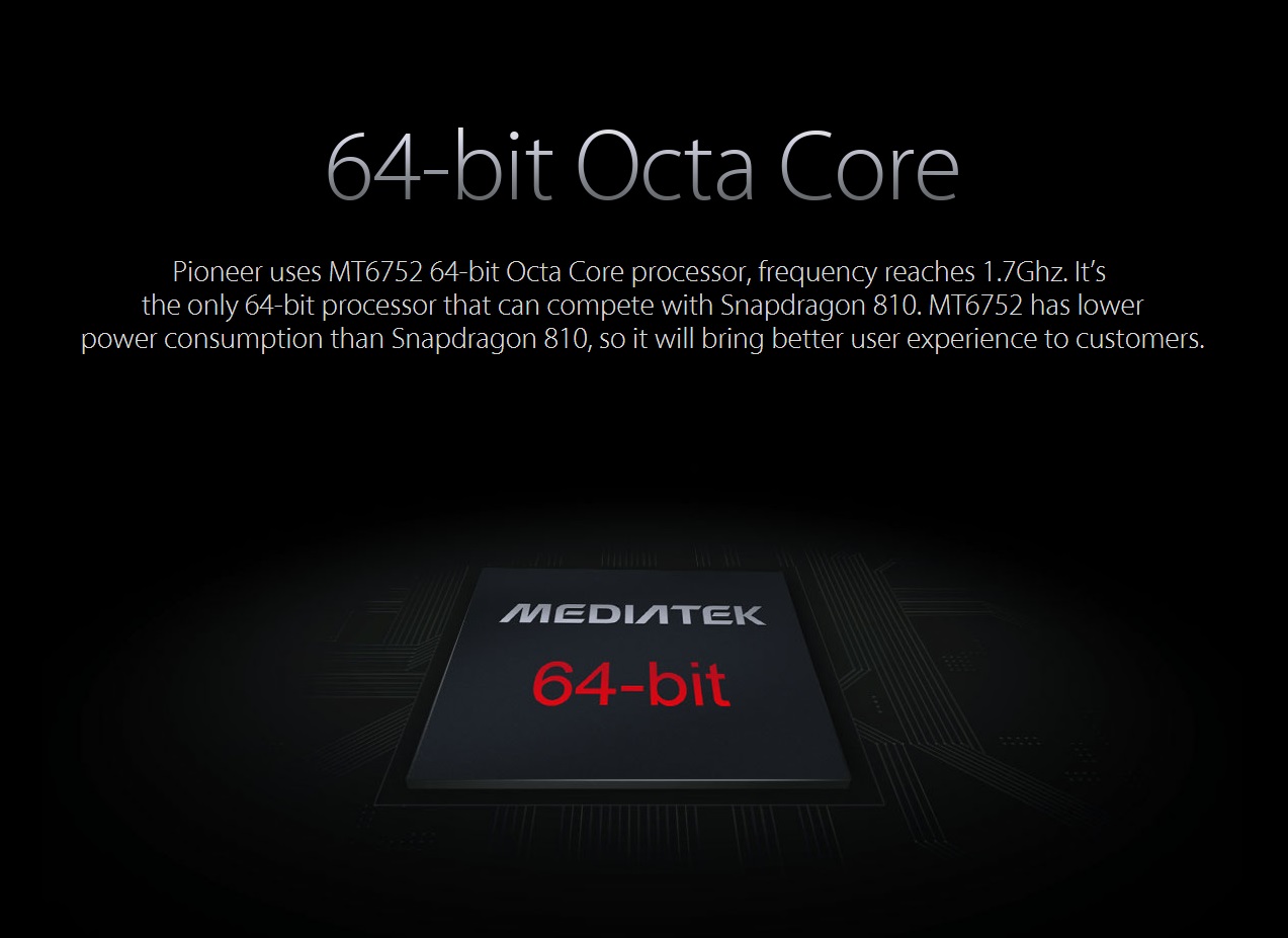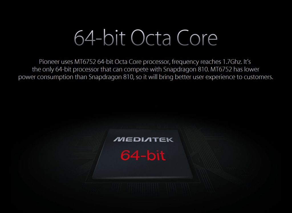 Mediatek’in orta seviye 64bit 8 çekirdek işlemcisi, MT6752 1.7Ghz. Sitesinde Snapdragon 810 ile karşılaştırmış, ancak 615 demek istedi aslında 🙂 Evet Snapdragon 615’den fiyat/performas olarak daha iyi bir işlemci, enerji tüketimi de daha az.