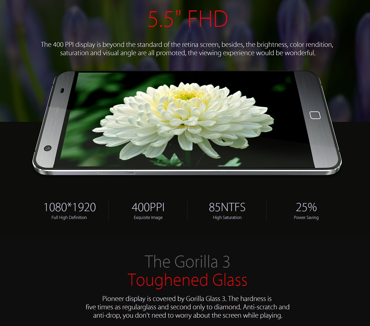 5.5″ Full HD ekran + Gorilla Glass 3