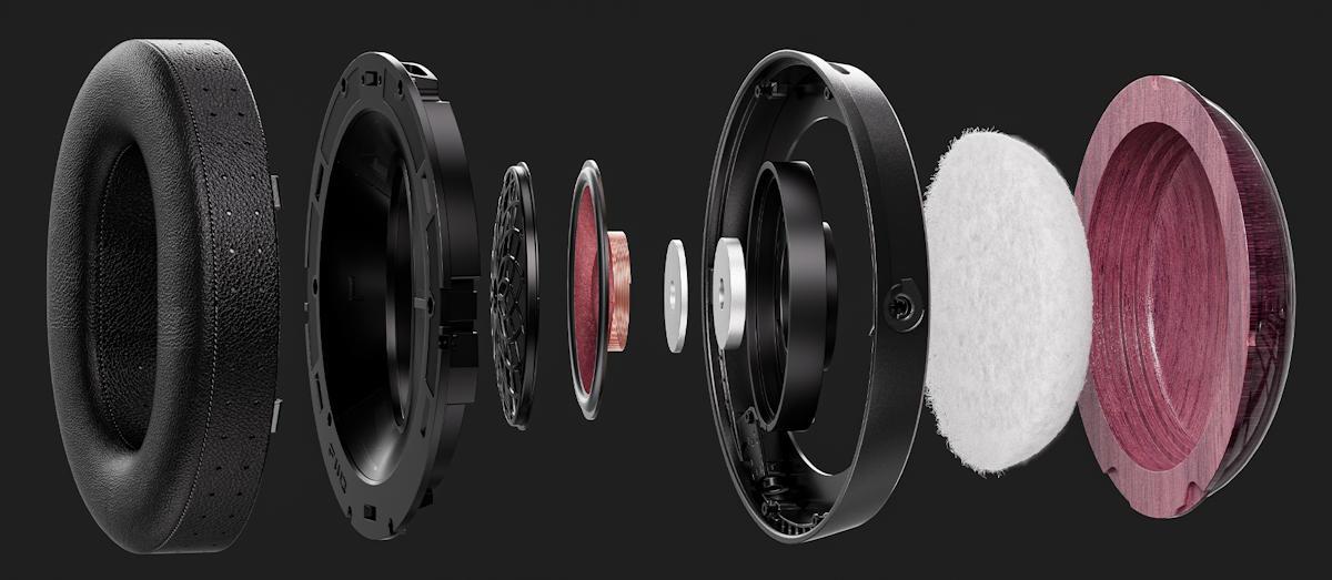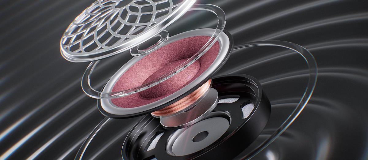 The headphone features a W-shaped diaphragm design inspired by speaker cones. Compared to the typical driver diaphragms, this design increases the effective vibration area of the diaphragm by 25.8%. The diaphragm is made from a hard dome and a flexible surround, which covers a larger surface area than traditional diaphragms, with less energy lost during vibration transfer. Moreover, the hard dome features reduced internal loss, resulting in higher efficiency and reduced distortion caused by driver breakup.