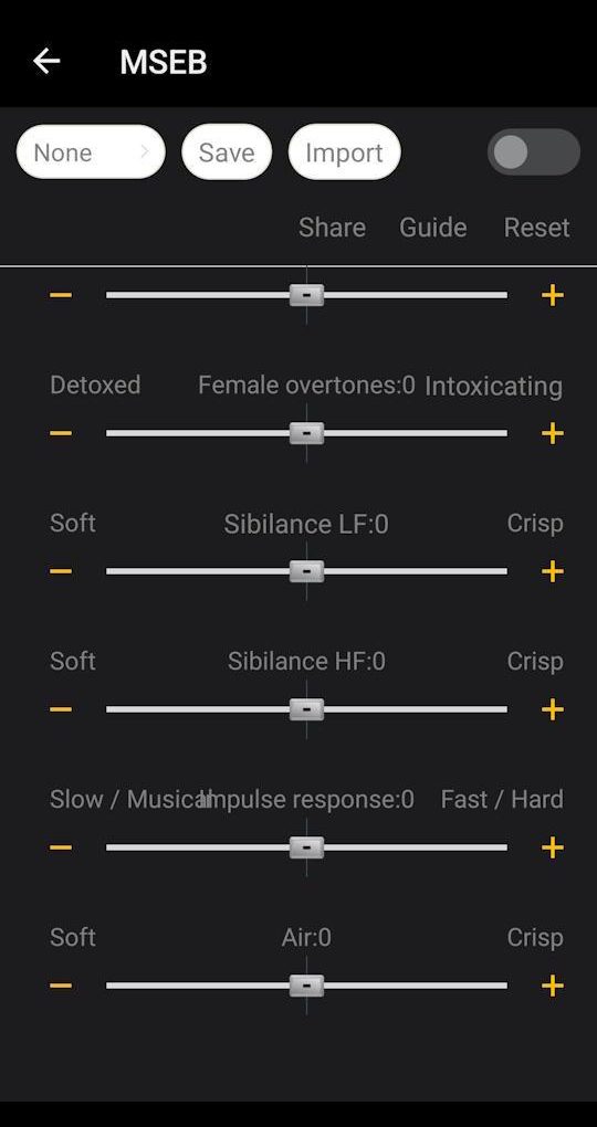The MSEB panel is frequently highlighted as one of the most practical features of the HiBy DAP series. It allows users to address minor audio issues, such as treble harshness or muddy lows, through intuitive sliders labeled in user-friendly terms.