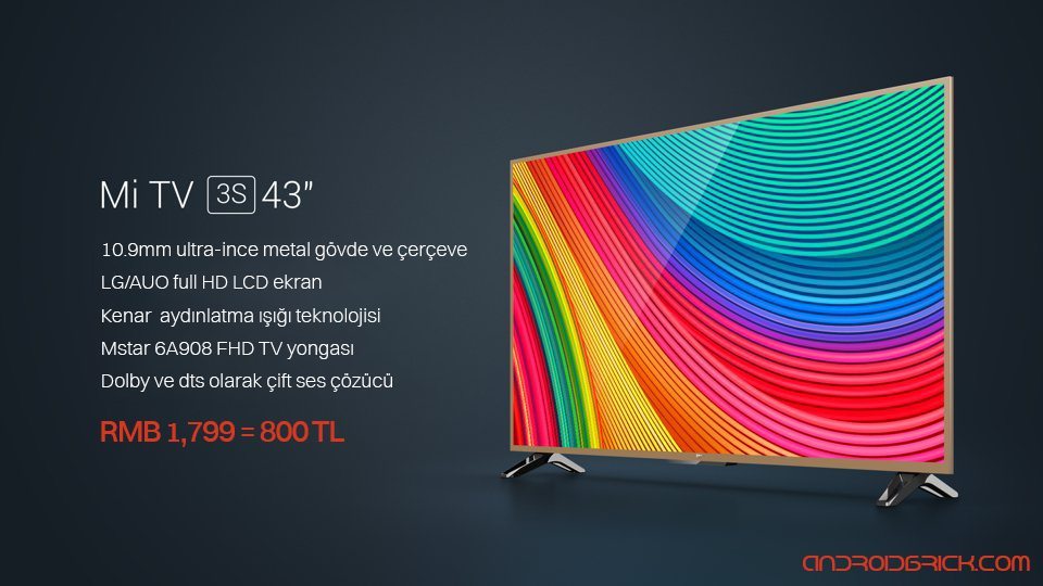 Xiaomi Mi TV 3S 43″ modelinin fiyatı ise 800TL olarak belirlenmiş. 65″ modeline göre orta seviye özelliklere sahip olması 43″ modeline fiyat tarafında olumlu yansımış. Bu modelde Mstar 6A908 dört çekirdekli işlemci bulunuyor. İşlemciyi oluşturan çekirdekler ise 1.45 GHz hızında çalışan Cortex A9 çekirdekleridir. 8 GB dahili hafızanın(eMMC 4.5) yanında 1 GB RAM’e de yer verilmiş. Bu modelde yine standart Wi-fi ve Bluetooth 4.0 desteği bulunuyor.