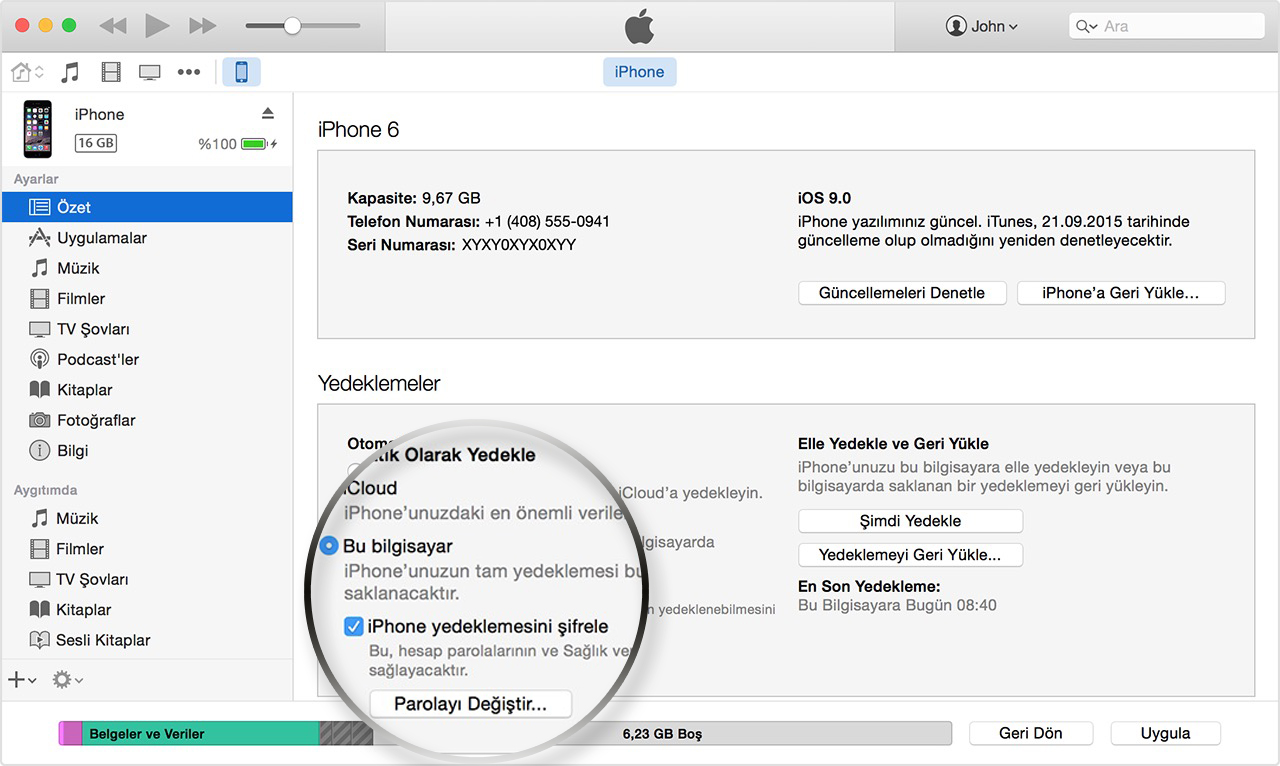 Şifrelenmiş yedekleme hakkında daha fazla bilgiyi buradan https://support.apple.com/tr-tr/HT205220 alabilirsiniz.