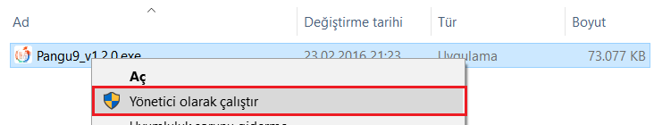 3. Pangu 9 aracını bilgisayarınıza indirin ve çalıştırın. Eğer Windows kullanıyorsanız aracın üzerine sağ tıklayarak “Yönetici Olarak Çalıştır” seçeneğini seçin.