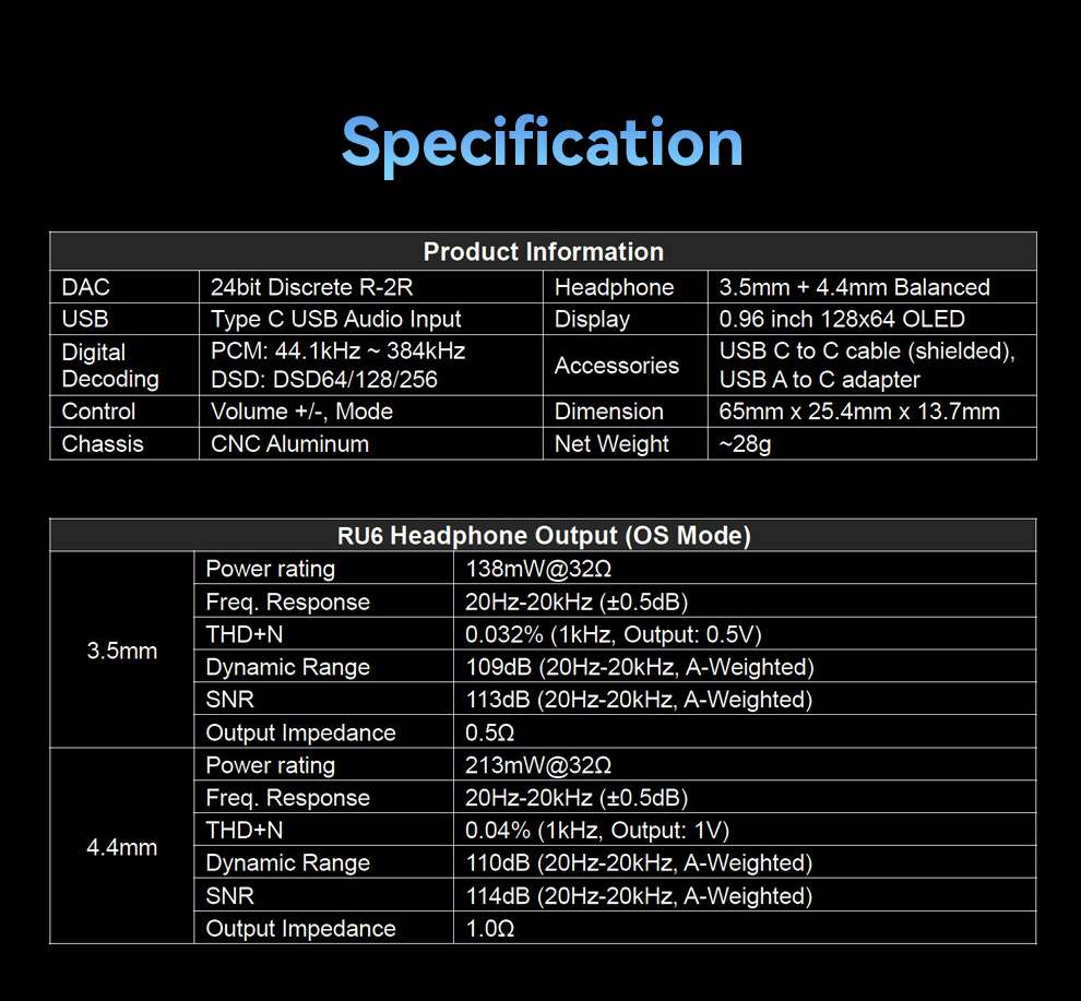 RU6 has two headphone outputs, one 3.5mm and one 4.4mm balanced.