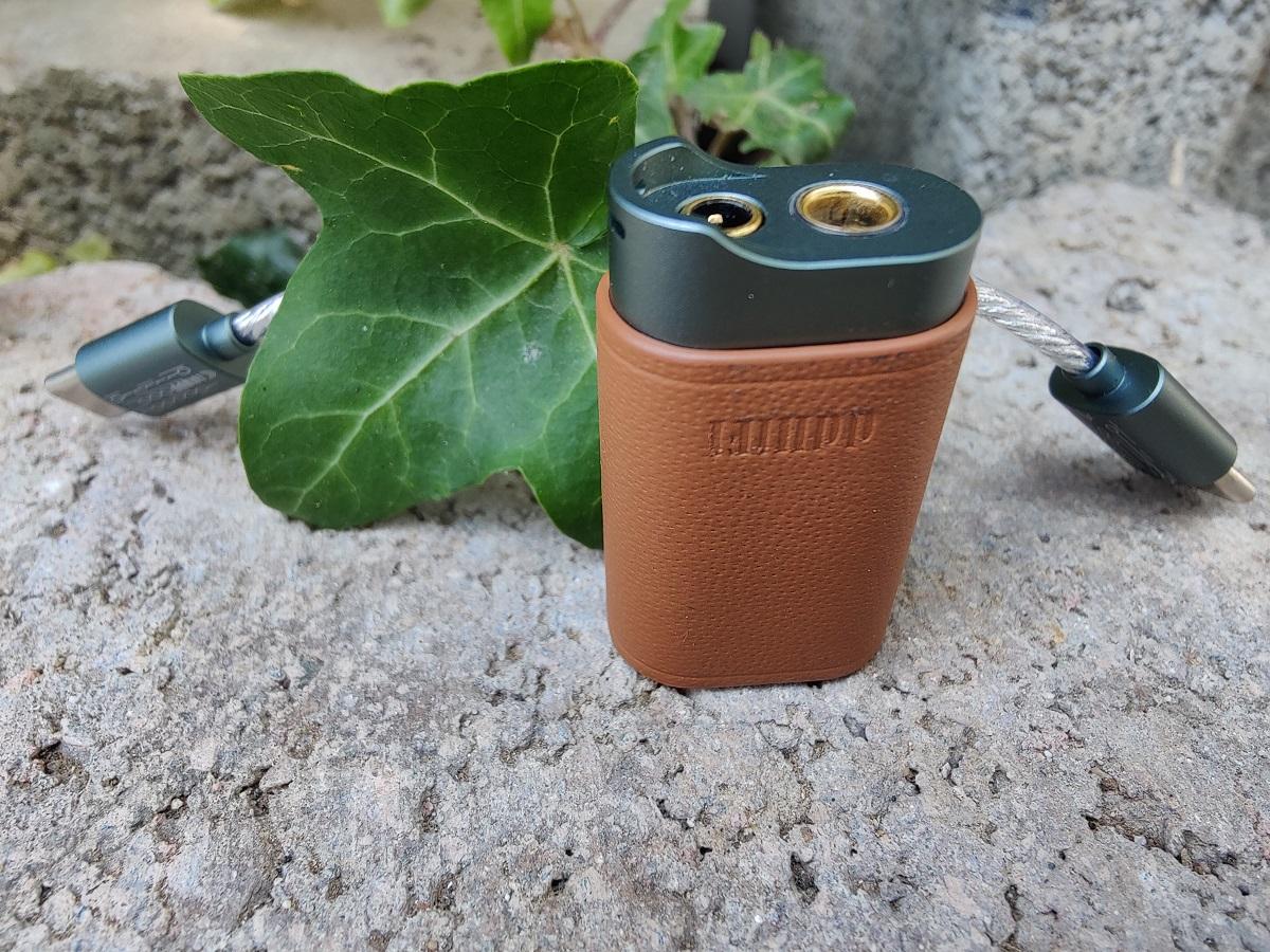Greenish frosted metal with rounded corners gives you a comfortable grip. There are no assembly gaps around the headphone sockets, which are susceptible to electromagnetic interference. Also, the golden thick bottom cover shields the USB socket thoroughly, the place where you only realize from the logo and product name that this is a ddHiFi product.