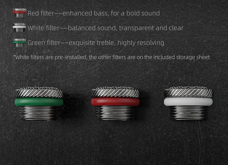 Included with the FH7S are 3 tuning filters, each of which has its own damping characteristics and filter density for 3 distinct sounds: