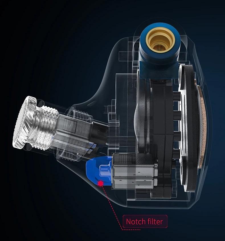 Using finite element analysis and after numerous experiments, the development team created a unique notch filter for the FH7S. The notch filter precisely guides sound waves to eliminate unwanted resonances between the shell, sound tube, and ear canal to suppress undesirable sibilance -resulting in a detailed, transparent yet unfatiguing sound.