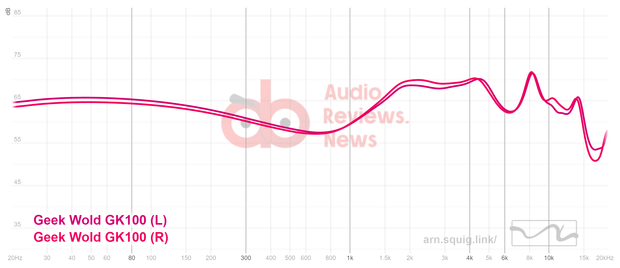 GK100’s lows show a linear bass reproduction while retaining the dynamics. You get a moderately thick rise into the sub-bass, meaning there will be enough versatility and warmth here for a wide variety of genres – at least when it comes to bass tones. Personally, I would’ve preferred a more distinct sub-bass shelf for a cleaner transition into the lower mids, but I can see a preference for this type of warmth as well.
