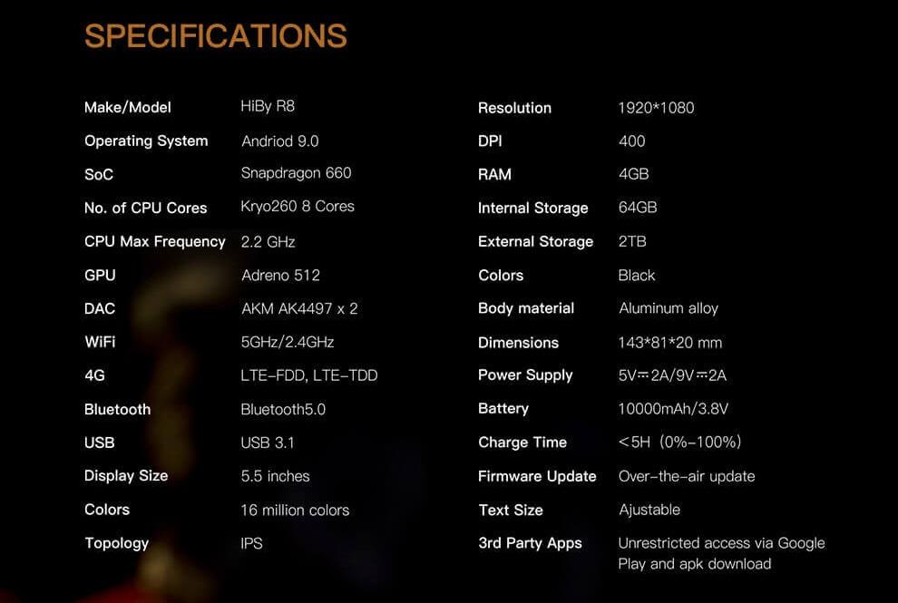 HiBy R8 comes equipped with a lightning-fast Qualcomm Snapdragon 660 CPU chip and up to 6GB of RAM. It offers snappy performance with zero lag in opening multiple media applications at once. You will get a smartphone-like smooth user interface with an open Android 9.0 OS that also opens doors to unlimited applications on the device.