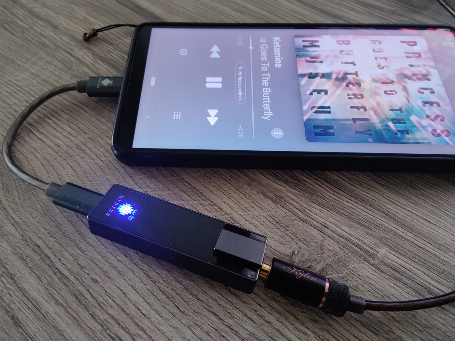 Another Hidizs logo, this time on the DAC, is also a LED indicator that lights up in different colors, synchronized with the sample rate of the music being played.