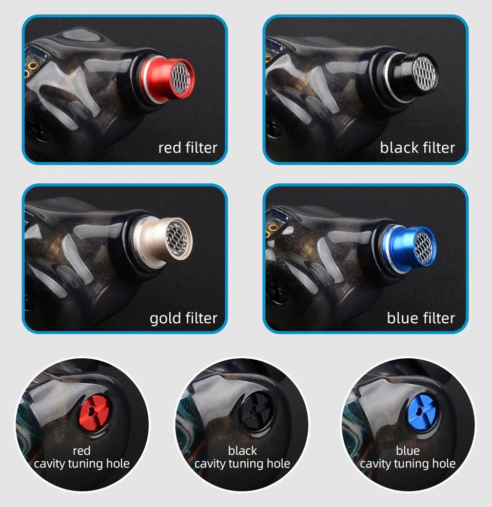 LZ A4 PRO has four tuner filters in red, black, gold, and blue, and it also contains three replaceable cavity tuning holes in red, black, and blue. The mixed dual adjustable tone design brings rich playability for the tuning options.