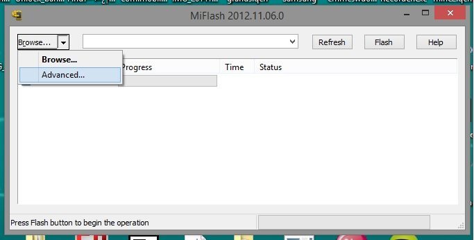 Sonrasında önceden yüklediğimiz ve masaüstünde kısayol oluşturan Miphone yazılımını çalıştırıyoruz. Miphone açılırken portları tarıyor ve gerekirse sistemde yoksa kendi qualcomm sürücülerini yüklüyor. Sol üstte “Browse” sekmesine tıklıyoruz ve “Advanced” kısmını seçiyoruz.