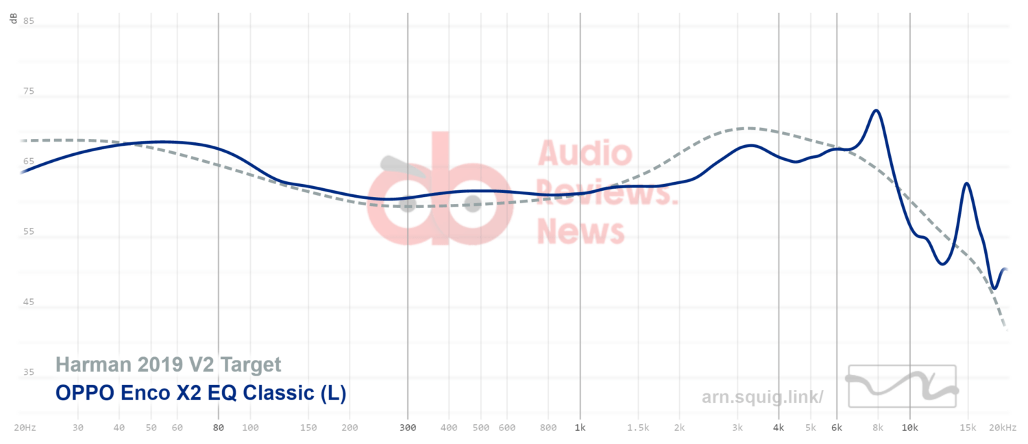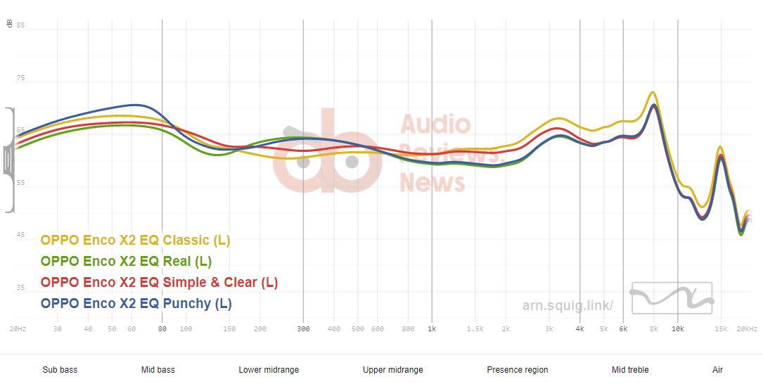 The Enco X2 has an elevated, impactful, and full-bodied bass reproduction. The sub-bass is slightly more prominent than the rest of the bass range, however, the bass feels abundant altogether. The textured, powerful bass contributes to the fun factor of the IEM. It’s tuned in a way (close to Harman 2019 V2) to prevent the bass from bleeding into the lower midsection. The detail level is also good. The Enco X2 performs well in this regard, the bass is controlled, very powerful, and quite exciting to listen to.