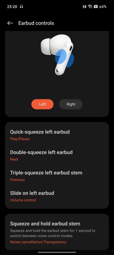 The OPPO Enco X2 earbuds support a single squeeze for play or pause, double squeeze for the next track, squeeze and hold to turn noise cancellation on or off, etc. You may also slide your finger up or down on the earbuds to adjust the volume without taking out your phone. The Golden sound feature includes an ear canal scan and hearing test to optimize the best sound profile for your ears.