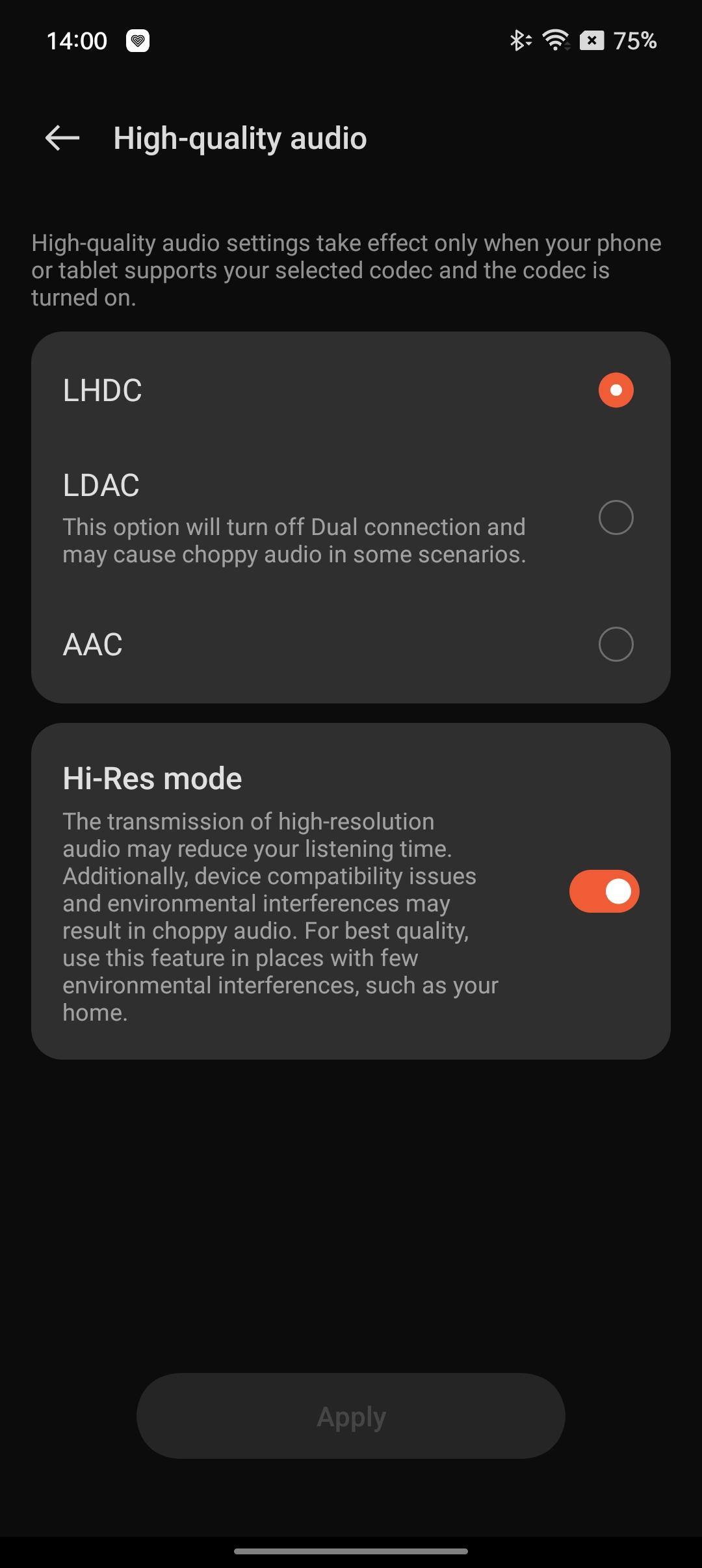 Also comes with both LDAC and LHDC Hi-Res codecs which support up to 900 kbps/24 bits/96 kHz. The Hi-Res mode in the settings menu triggers the 96kHz mode.