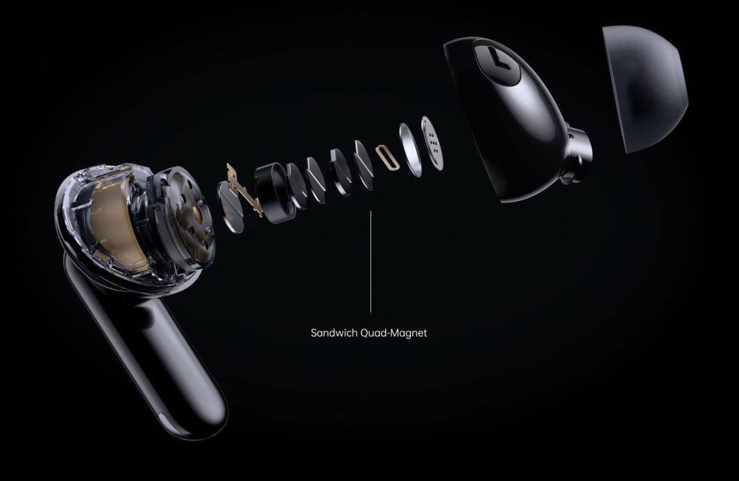 OPPO’s classic balanced planar diaphragm technology use magnets as the key driver of the diaphragms. OPPO has created the all-new “Sandwich” quadruple-magnet structure which dramatically improves diaphragm performance. Compared with the previous generation, the OPPO Enco X2 earbuds see a 100% improvement in high-frequency extension, all the way to 40 kHz, and feature higher resolution.