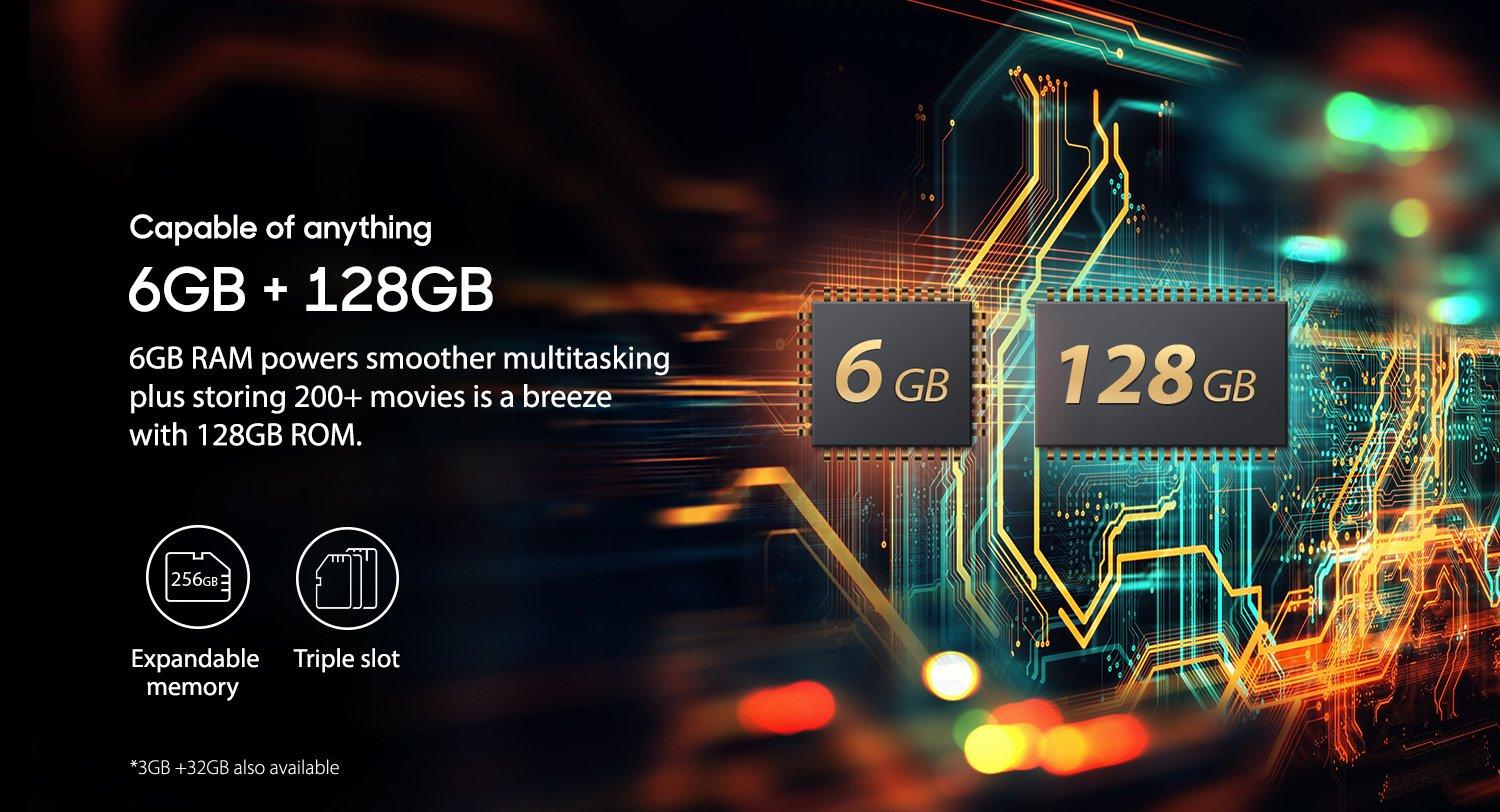 Ram seçenekleri 3GB, 4GB ve 6GB. Hafıza seçenekleri ise 32GB, 64GB ve 128GB. SD kart yuvası da mevcut, hem de 2. hattınızı feda etmediğiniz kendi ayrı slotunda.