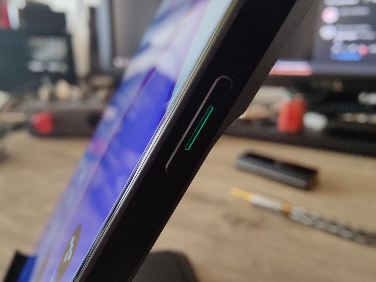 The Reno 8 Pro has a standard control set and layout. All three of its buttons are nice and big and easy to feel out, particularly the power button, with its little recessed bit and green color accent.