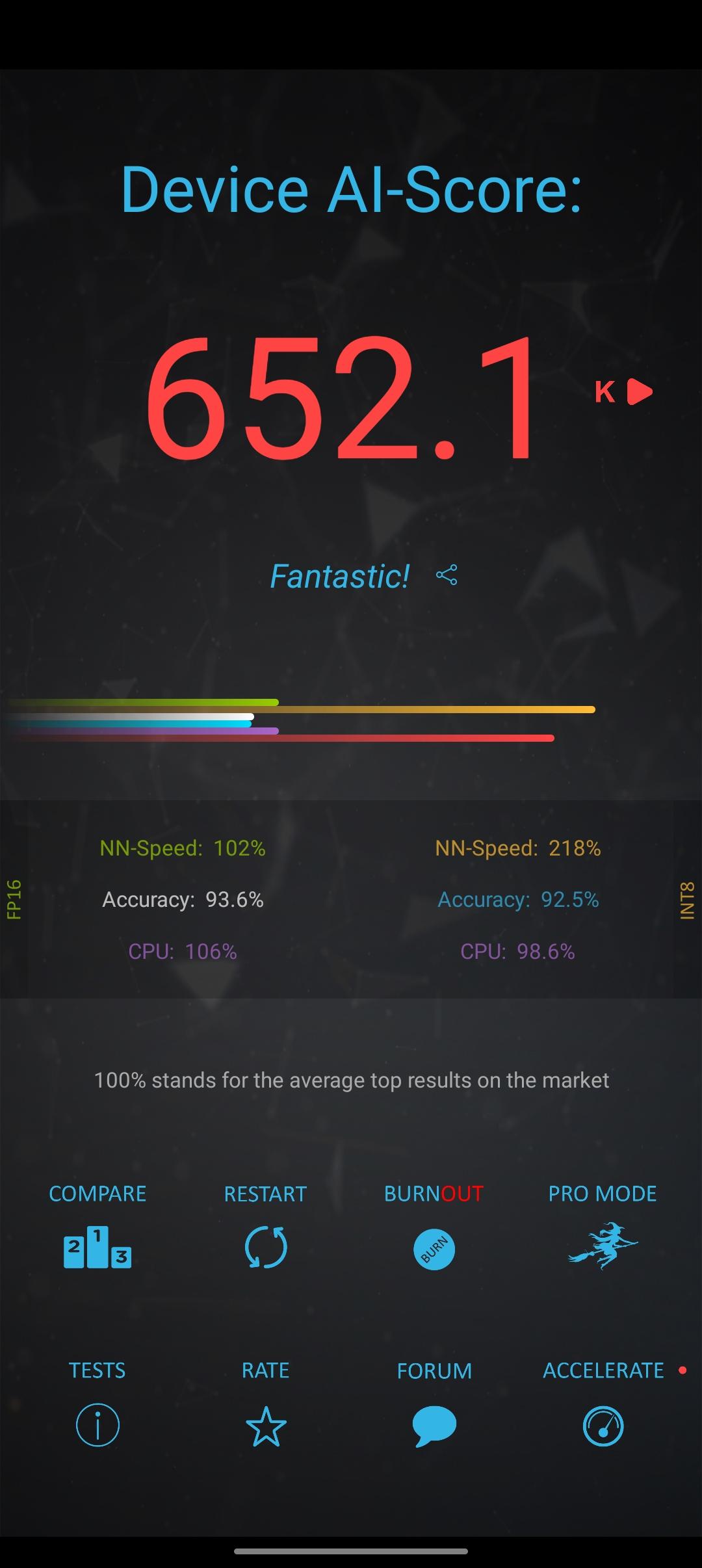 The Dimensity 8100-MAX SOC that the Reno 8 Pro comes with includes a 4x Cortex-A78@2.85 GHz and 4x Cortex-A55@2.0GHz CPU setup, a Mali-G610 MC6 GPU, a MediaTek Imagiq 780 ISP, and a MediaTek APU 580 AI processing unit, plus an LPDDR5 memory controller all packaged on a 5nm TSMC node. That’s just a hair more powerful than the Dimensity 8000 and generally positioned to be competitive with Qualcomm’s Snapdragon 888 and 888+. But in my tests, I saw that 8100-MAX can compete even with the latest flagship SOCs from Apple, Google and Qualcomm when it comes to AI benchmarks. Dimensity 8100-MAX has the 3rd best score after SD 8 Gen 1 and Dimensity 9000.