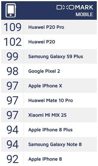 Söz kameralardan açılmışken, Huawei P20 ve P20 Pro serileri, artık tüm dünya tarafından kabul edilen Dxomark test sonuçlarında en yüksek puanları alarak Samsung Galaxy S9, iPhone X ve Google Pixel 2 modellerinin üzerine geçtiler. Fotoğraf testlerinde 114 puan alan  P20 Pro, 104 puanlı Samsung S9 Plus’ı ve 101 puanlı iPhone X’e fark attı. Bu arada belirtelim, Samsung S9 ile lansmanı yapılan 2 saniyelik 960 fps ultra yavaş çekim özelliği P20 Pro’da da bulunuyor ve saniye sınırlaması yok ! Dxomark toplam puanı fotoğraf ve video testlerinin ortalaması olarak alınıyor, işte sıralama (ilk 10) :