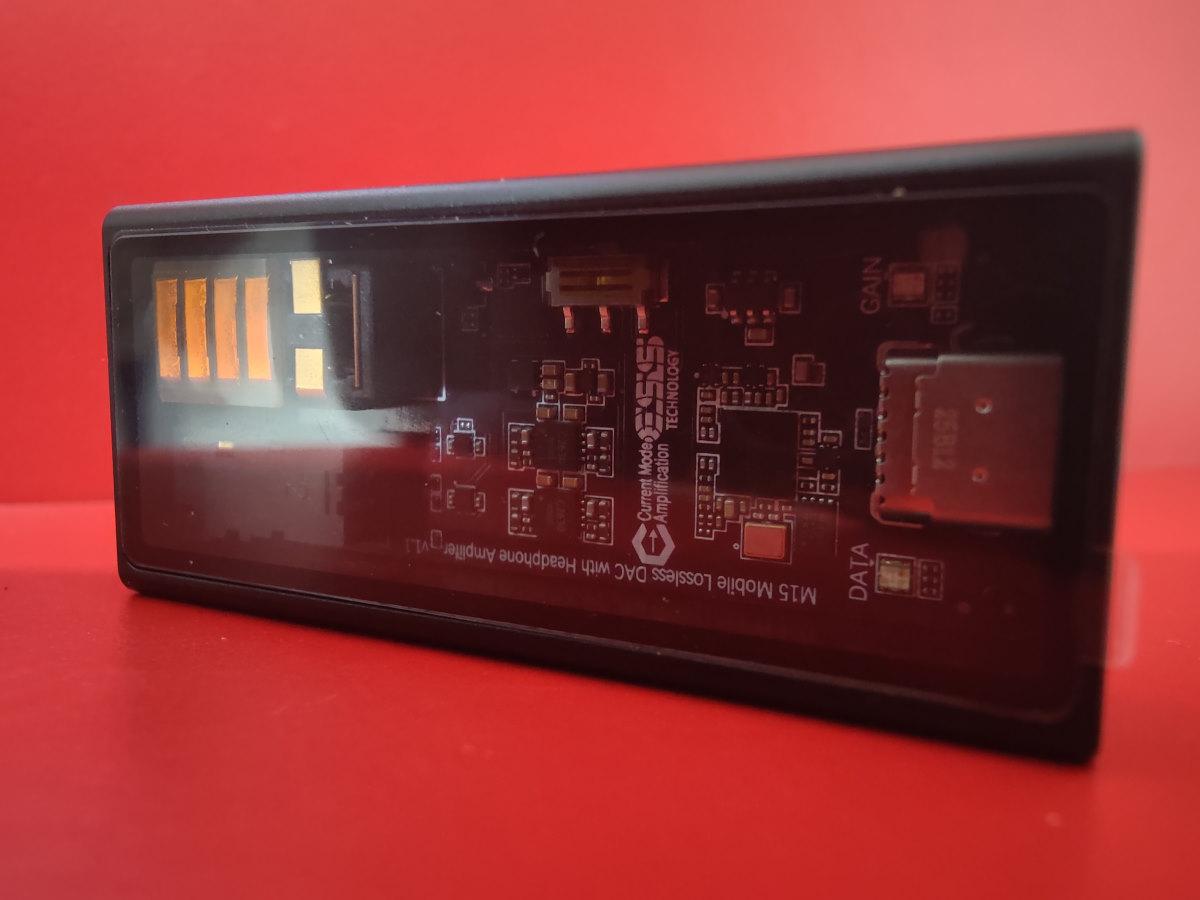 Questyle has designed the M15 with a CNC-machined aluminum chassis and a transparent front window. Through the transparent window, we can see the entire circuitry inside the M15 and two LED indicators. One light tells us about the active file bitrate while the other indicates the active gain level.