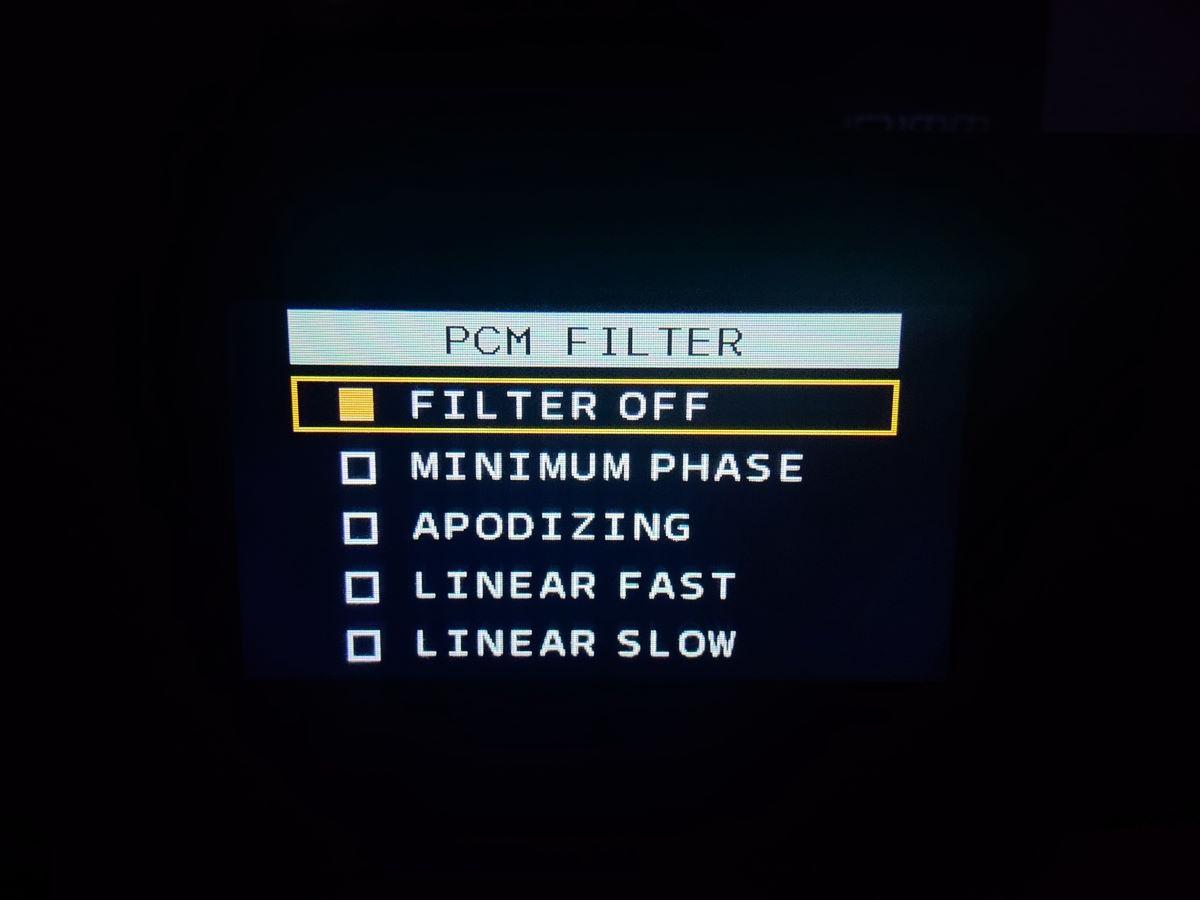 DSD Filter: 47k, 50k, 60k, 70k CUT-OFF.