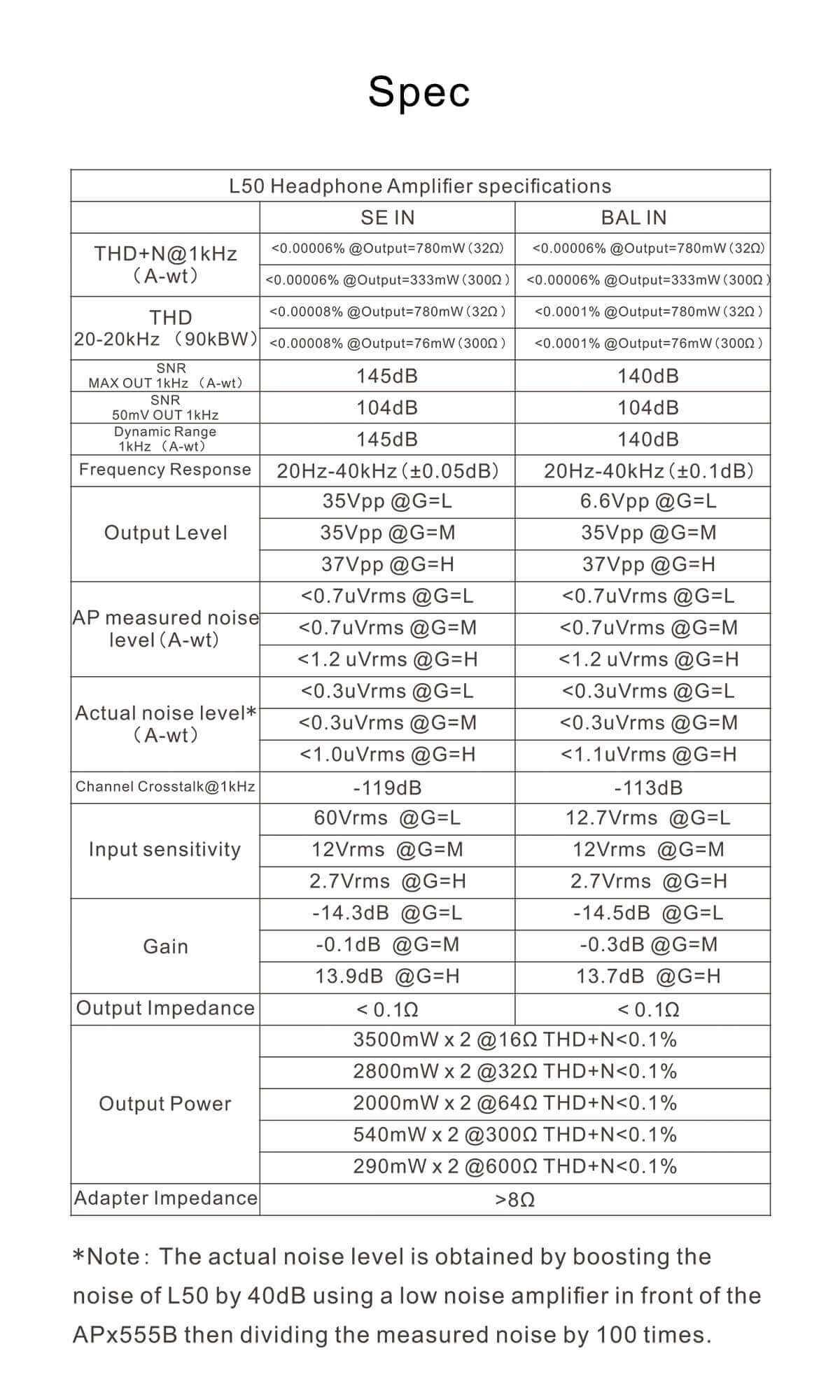 Noise(A-wt): <1.3uVrms.