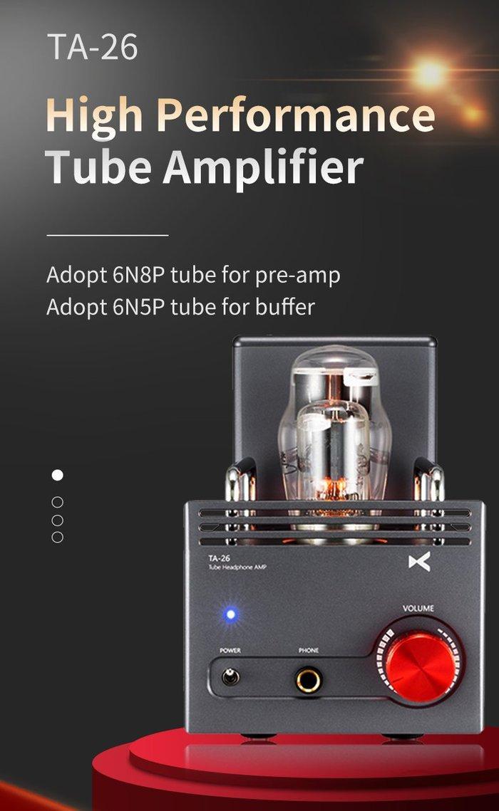 Latest tube amplifier from xDuoo, TA-26. This 500mW tube amplifier is minimal with simple RCA ins and outs, a volume knob, and a single-ended output to experience that classic tube sound.